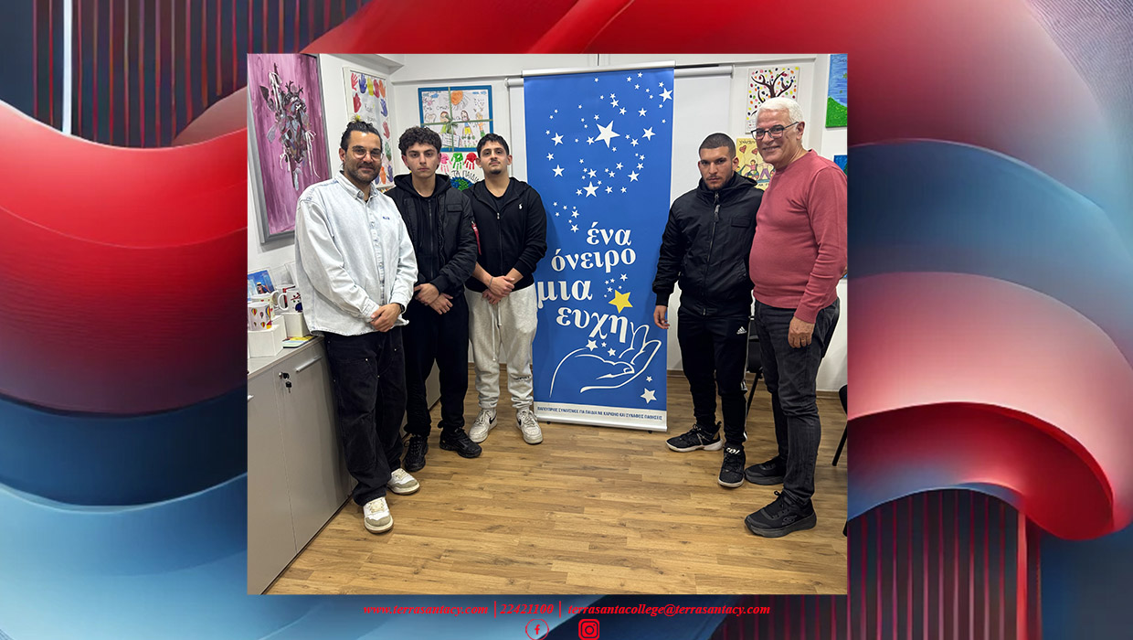Ο Σύνδεσμος Ένα Όνειρο Μία Ευχή, στην παρουσία των μαθητών του σχολείου μας Παναγιώτη Πετρή, Γιώργου Χριστοφίδη, Παναγιώτη Παυλακού και του καθηγητή Γιώργου – Τόμμυ Χρυστοστόμου, παρέδωσε σε οικογένειες παιδιών με καρκίνο και συναφείς παθήσεις το χρηματικό ποσό που συγκεντρώθηκε από την Ημερίδα Εθελοντισμού του σχολείου μας.
