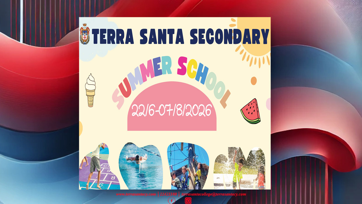 Αγαπητοί Γονείς και Κηδεμόνες, Tο “Terra Santa Summer School” έπειτα από την πολύχρονη επιτυχία του, θα λειτουργήσει και φέτος, ανανεωμένο με νέες δραστηριότητες υποσχόμενο στιγμές δημιουργικότητας αλλά και ξεγνοιασιάς...